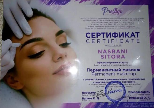 Certified by the Prestige Beauty Education center, Sitora has mastered specialized techniques in Permanent Makeup artistry.